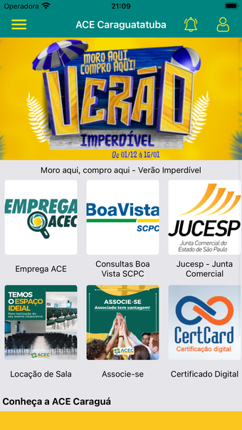 ACE Caraguatatuba เป็นแอปพลิเคชัน iPhone อย่างครอบคลุมที่ถูกออกแบบให้เหมาะสำหรับชุมชน มีข้อมูลมากมายอยู่ในปลายนิ้วของผู้ใช้ ตั้งแต่สถานที่ท่องเที่ยว กิจกรรมท่องเที่ยว กำหนดการกิจกรรม ไปจนถึงไดเร็กทอรีทางการค้า และสมาชิกสิทธิประโยชน์ แอปพลิเคชันนี้มีเป้าหมายที่จะเป็นที่หยุดพักเดียวสำหรับผู้อาศัยและผู้มาเยือนที่เท่าเท่ากัน